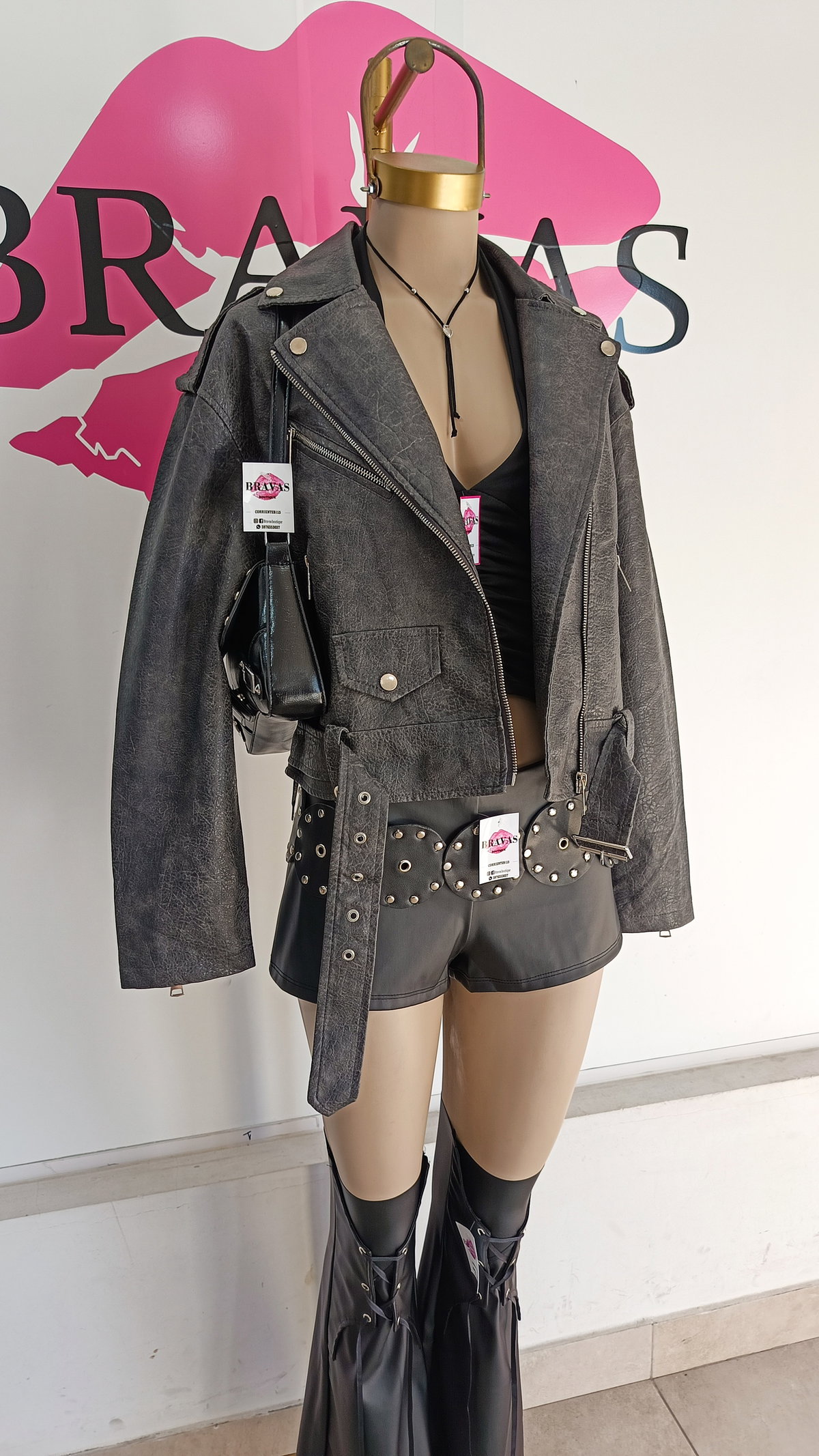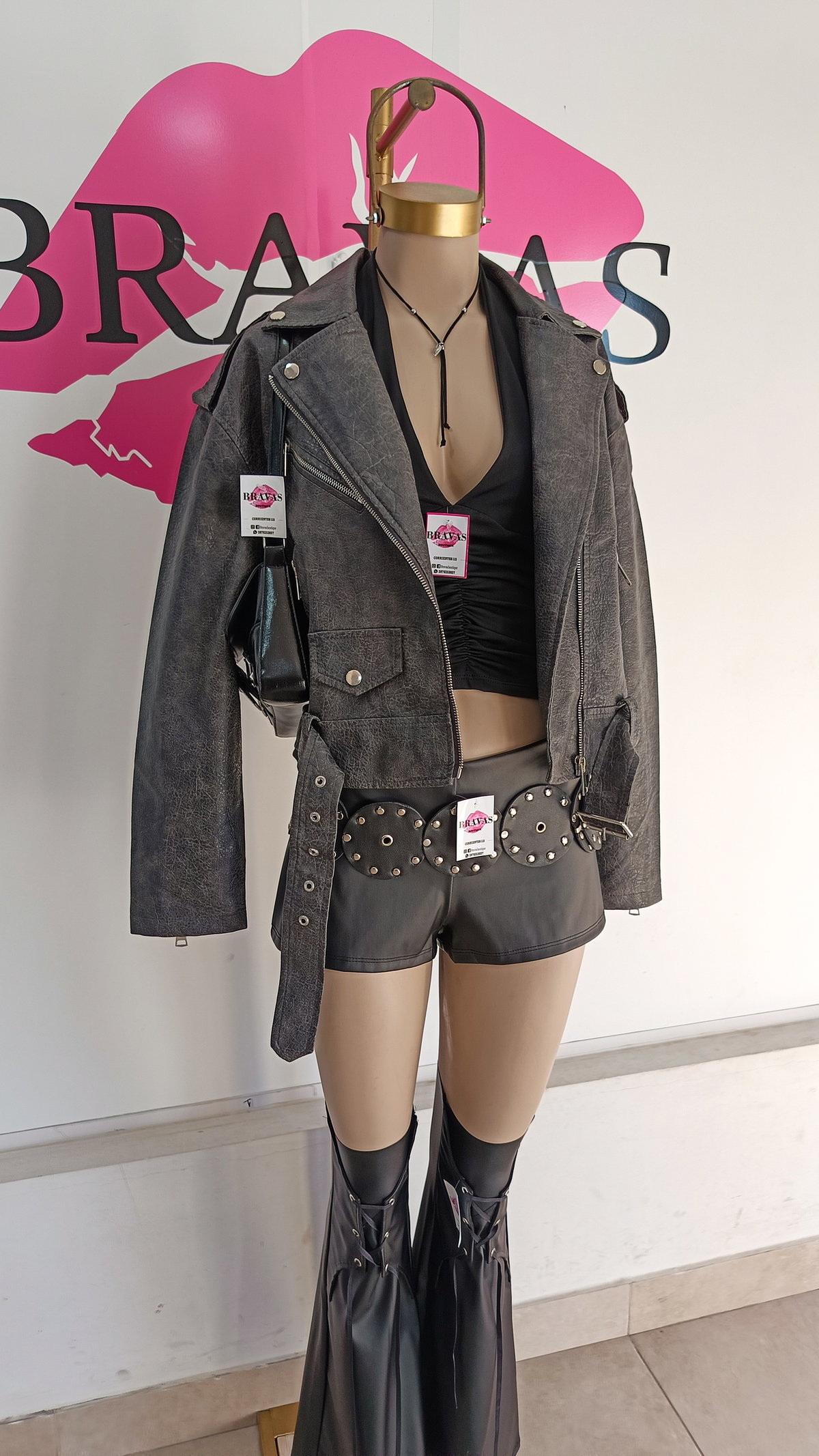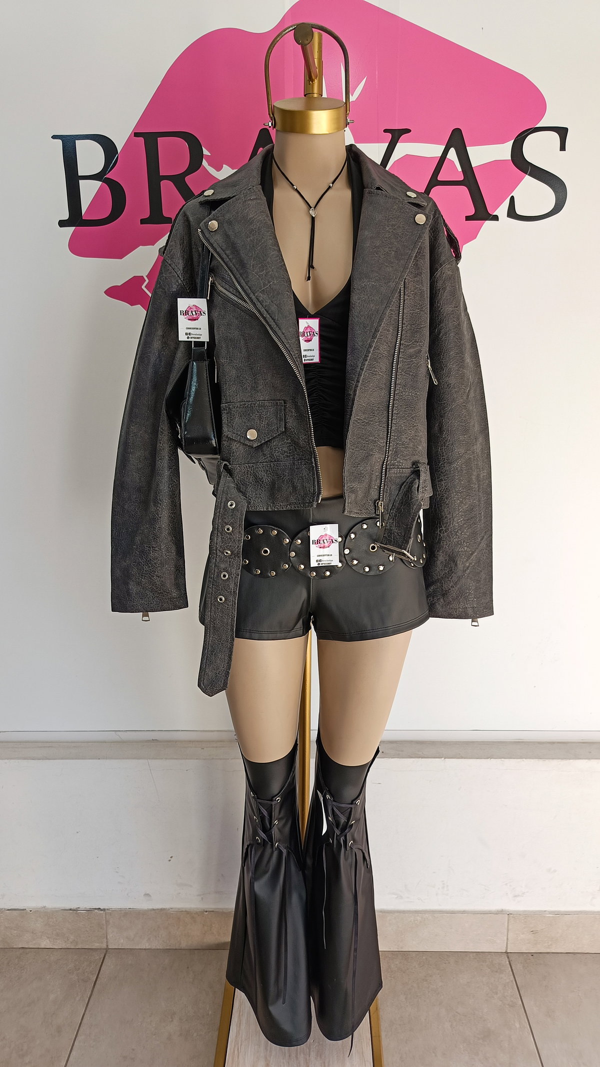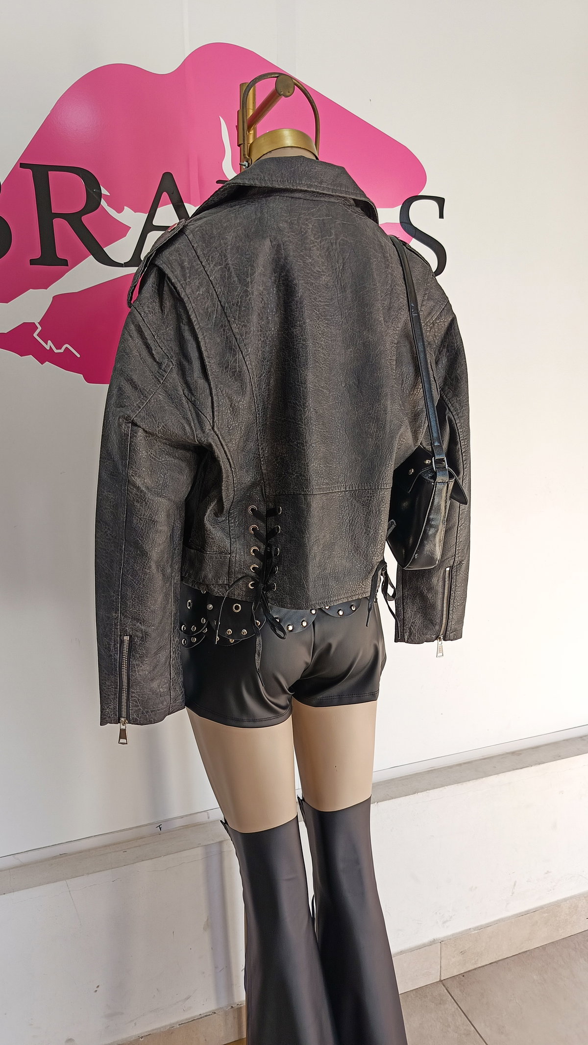 De eco cuero | con cierre en bolsillos y puños | bolsillos decorativos con botón | trenzado en espalda