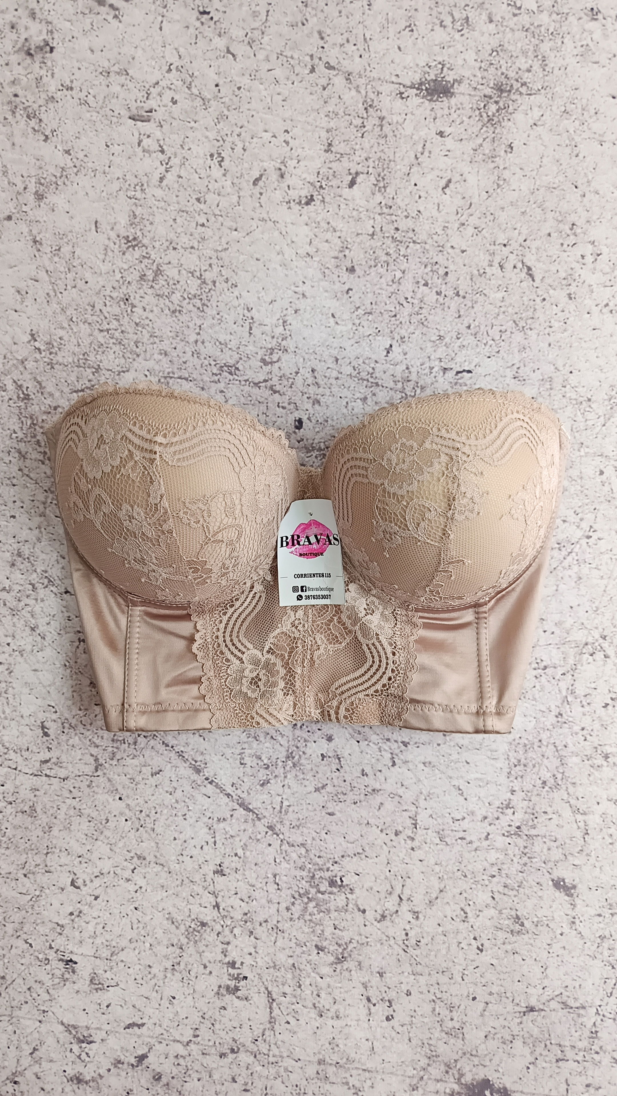 DE MICROFIBRA SATINADA Y PUNTILLA | ESPALDA REGULABLE CON CINTA CORSETERA