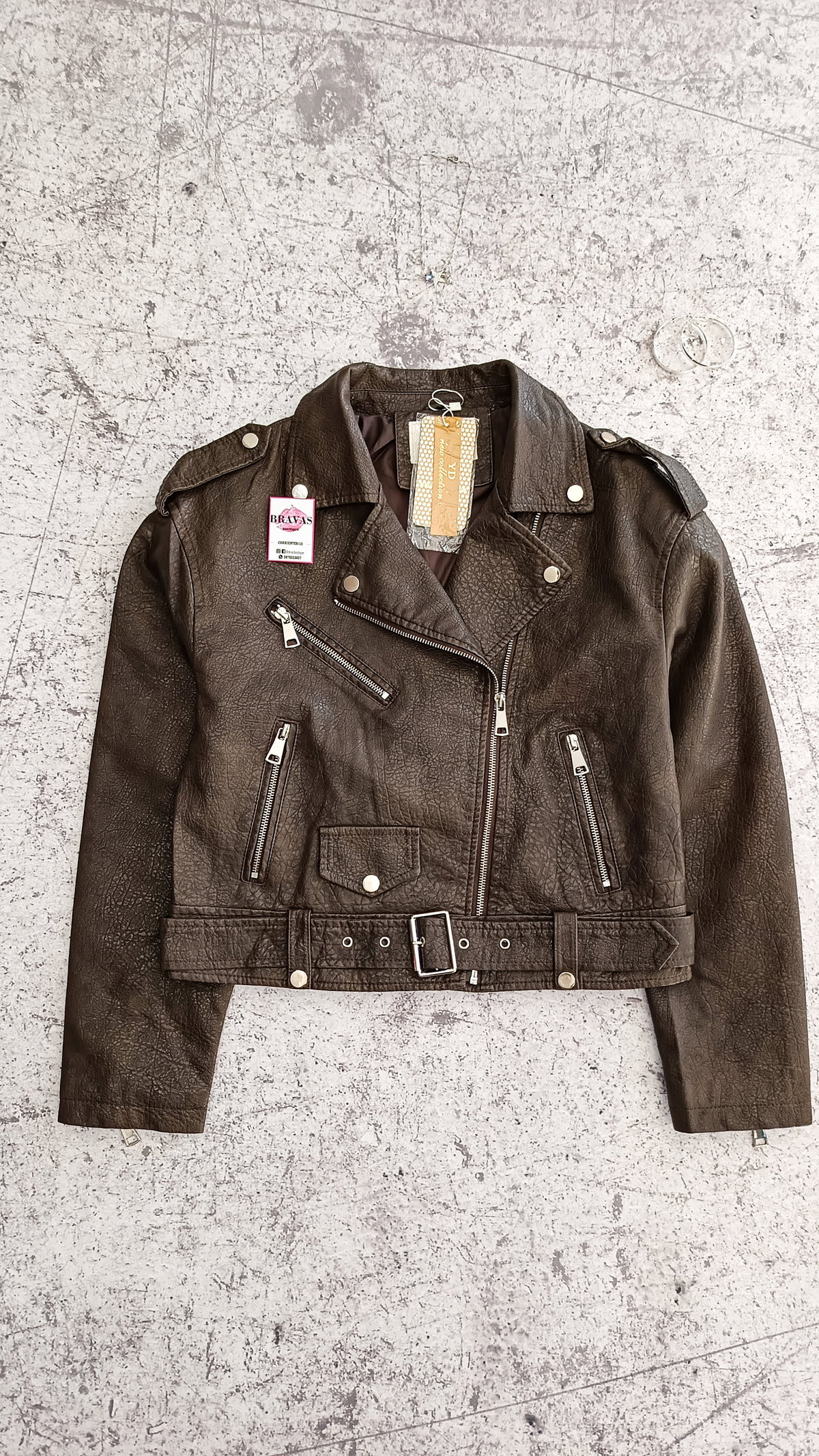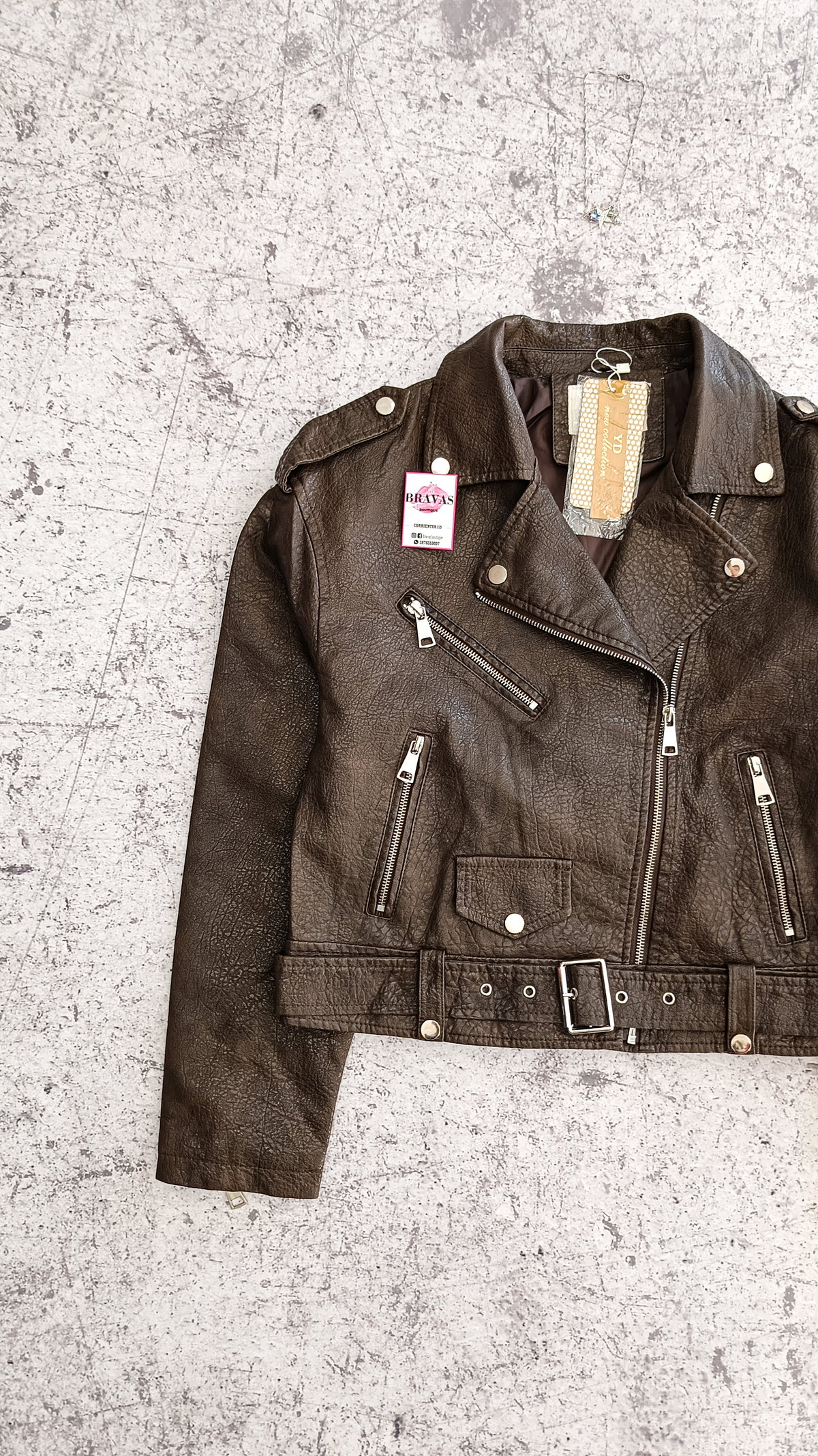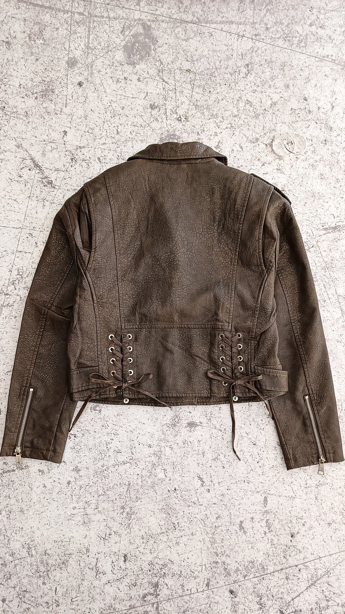 De eco cuero | con cierre en bolsillos y puños | bolsillos decorativos con botón | trenzado en espalda