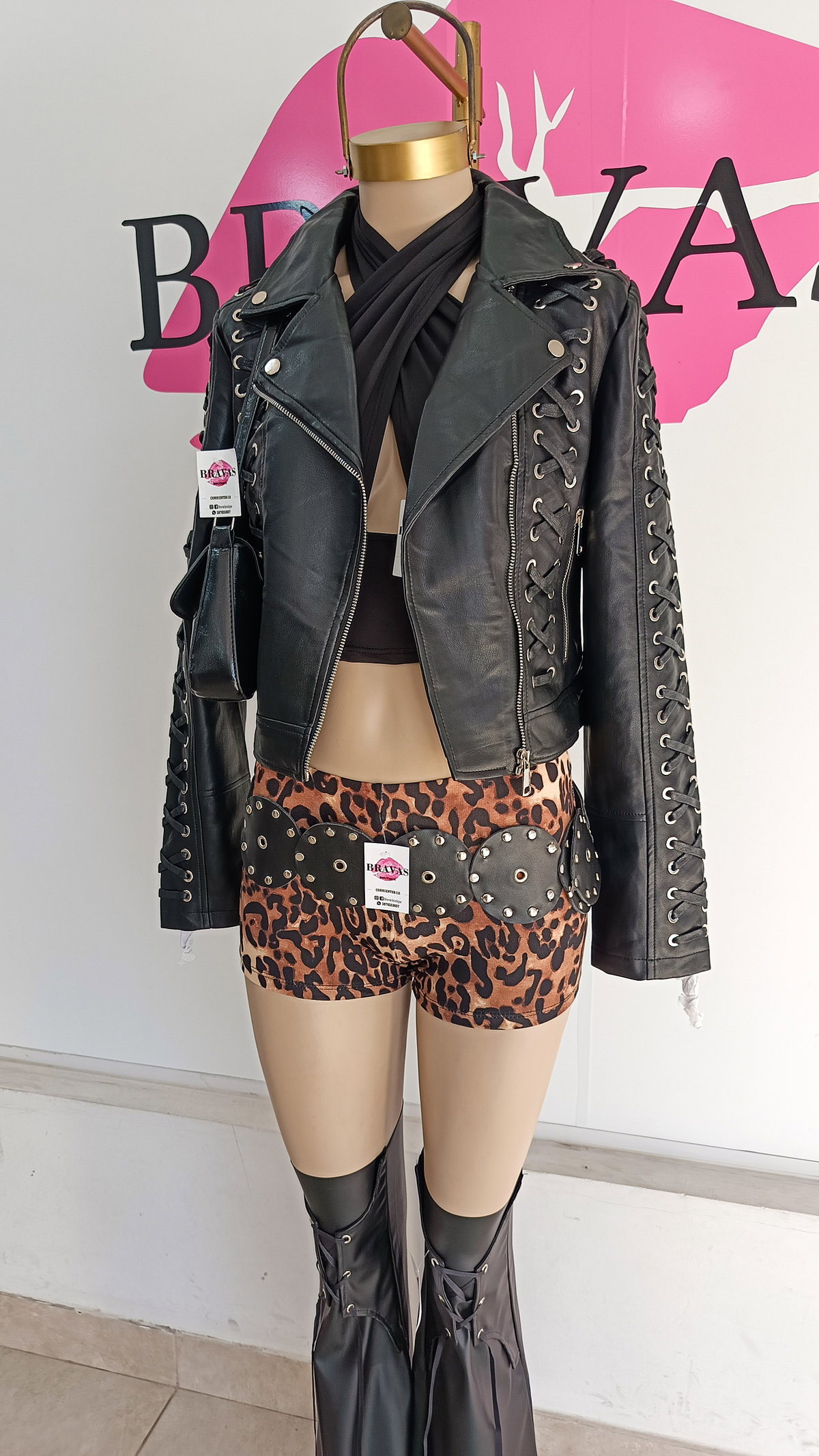 De eco cuero | con cierre en bolsillos y puños | trenzado en frente y mangas