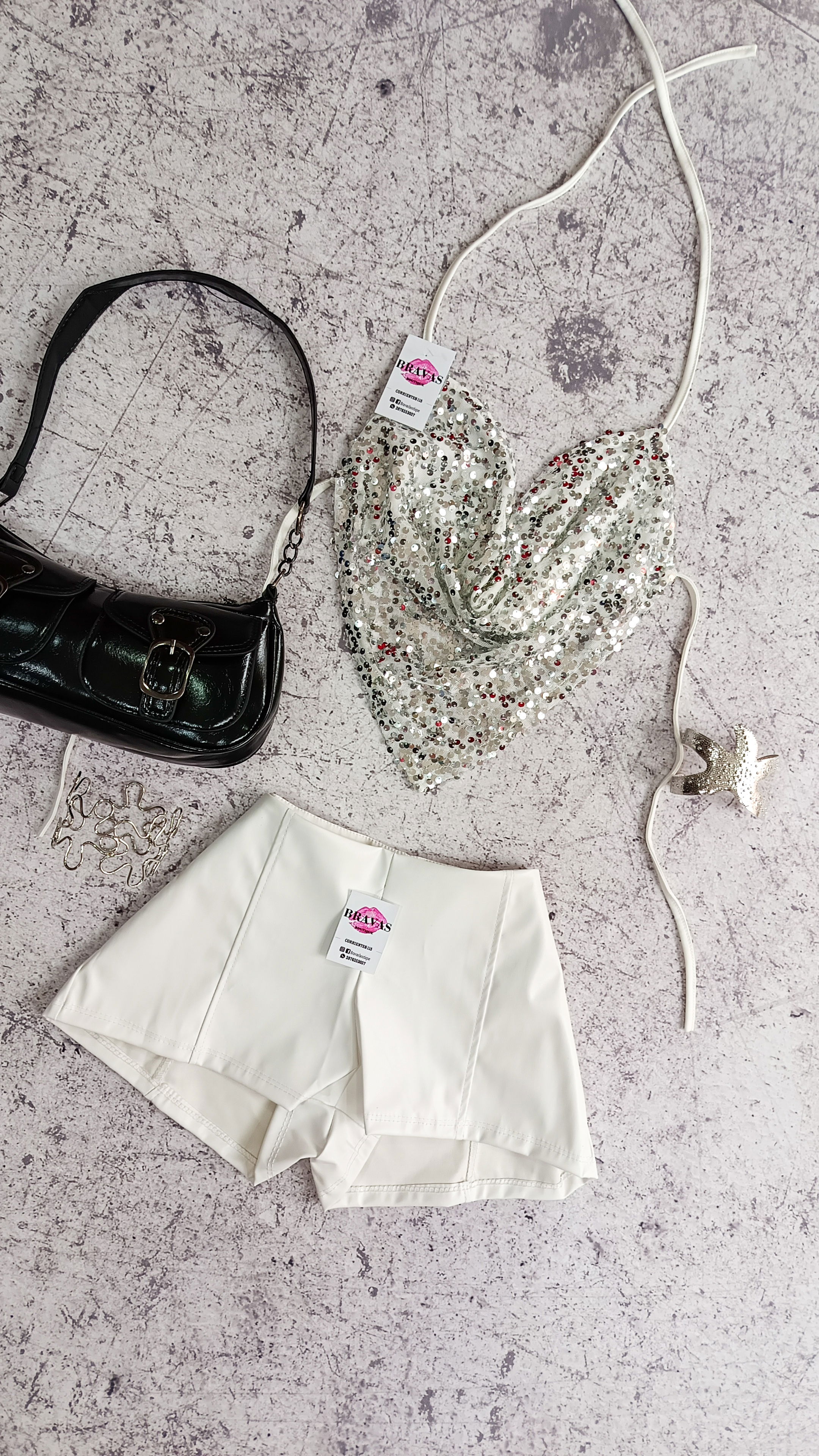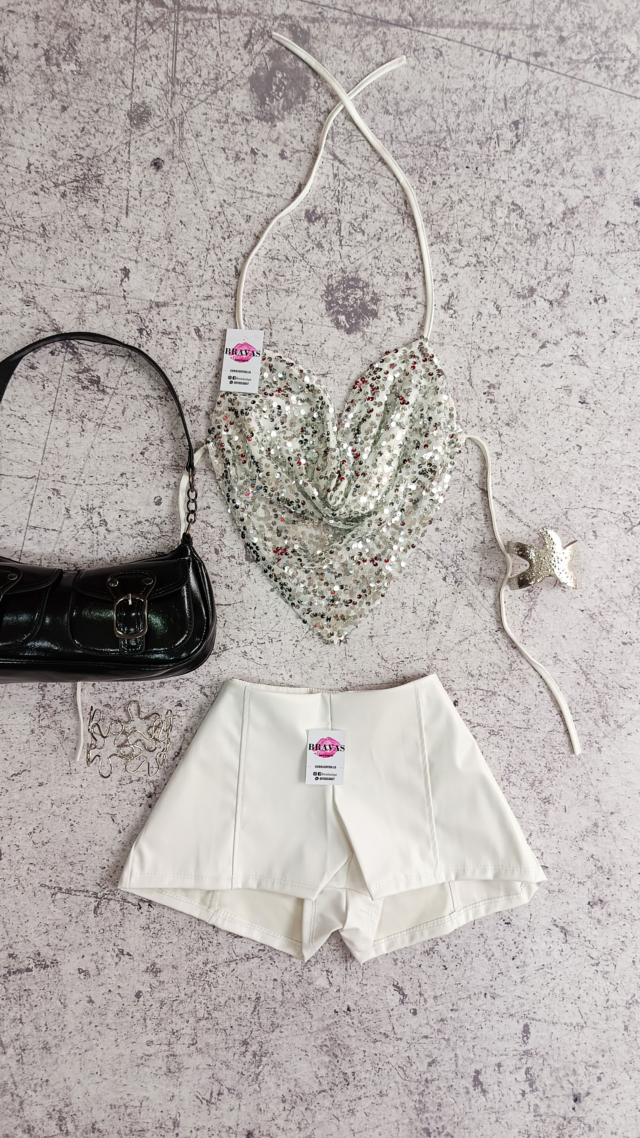 De lentejuelas | con cuello y espalda regulables para atar | Talle unico S/M