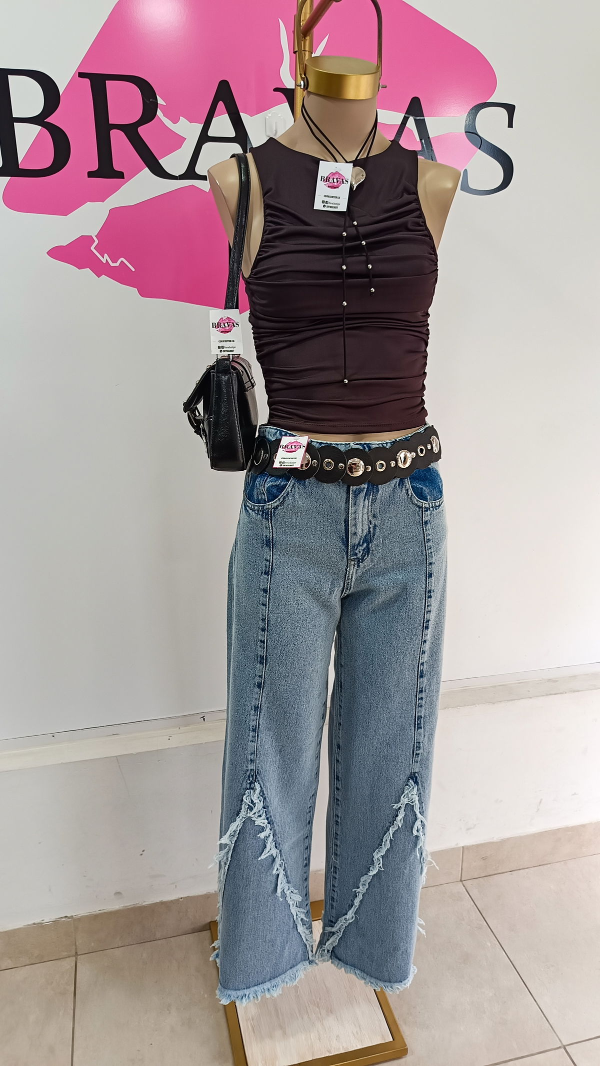 Jeans rigido | con bolsillos adelante y atras | bota con detalles desflecado